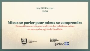 Pour la relève agricole. Préparée par la Fédération de la relève agricole du Québec FRAQ.